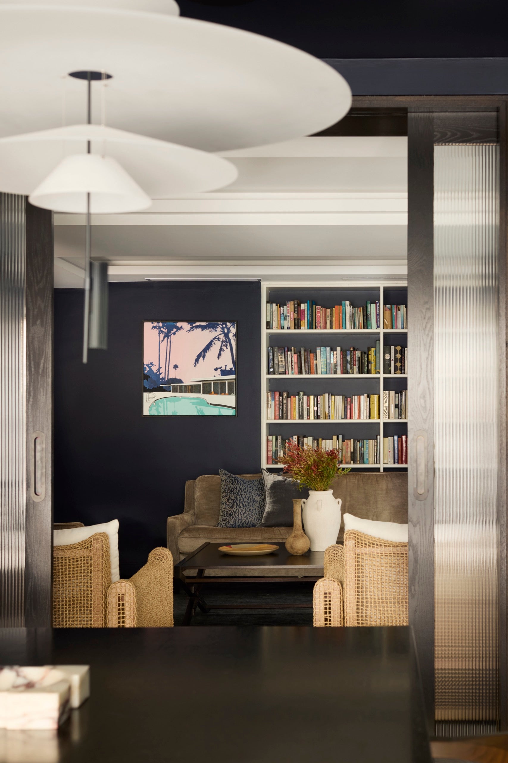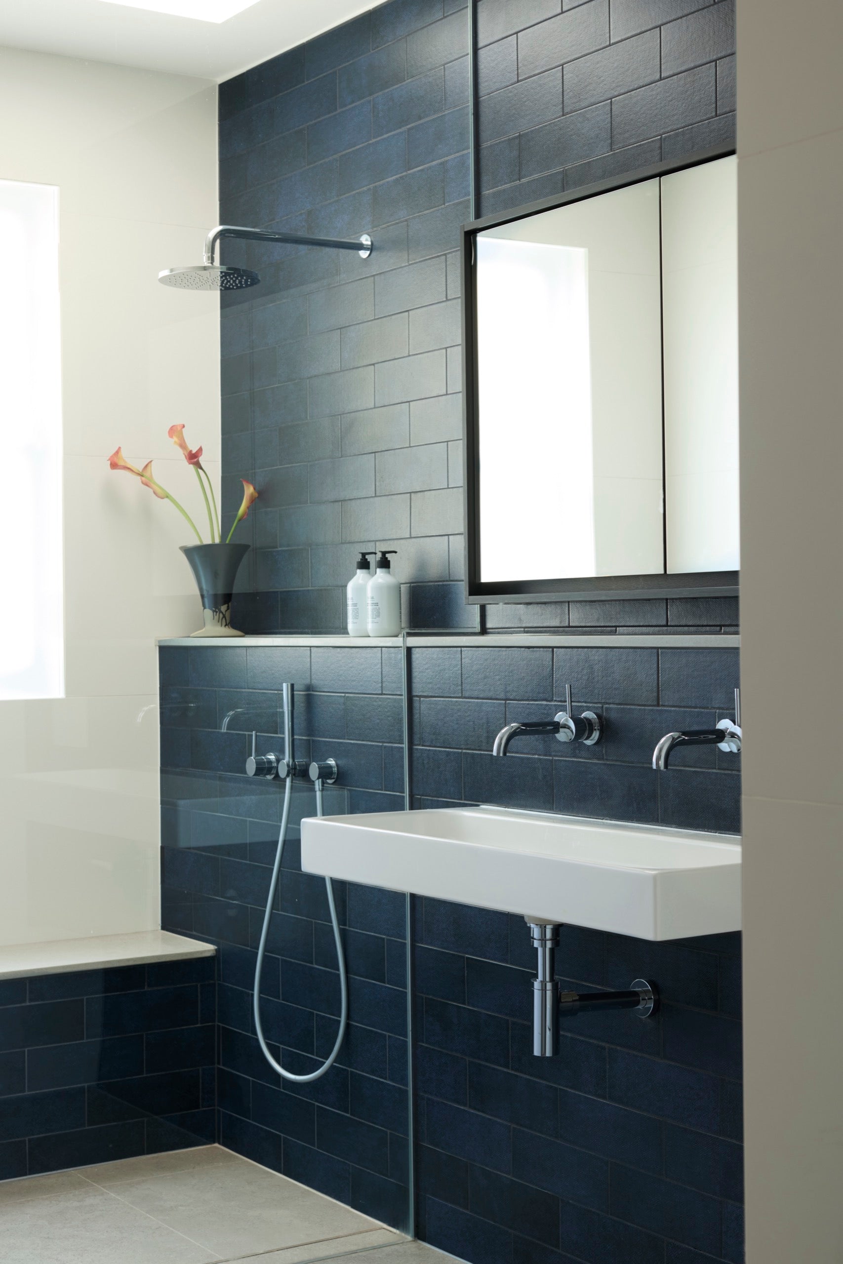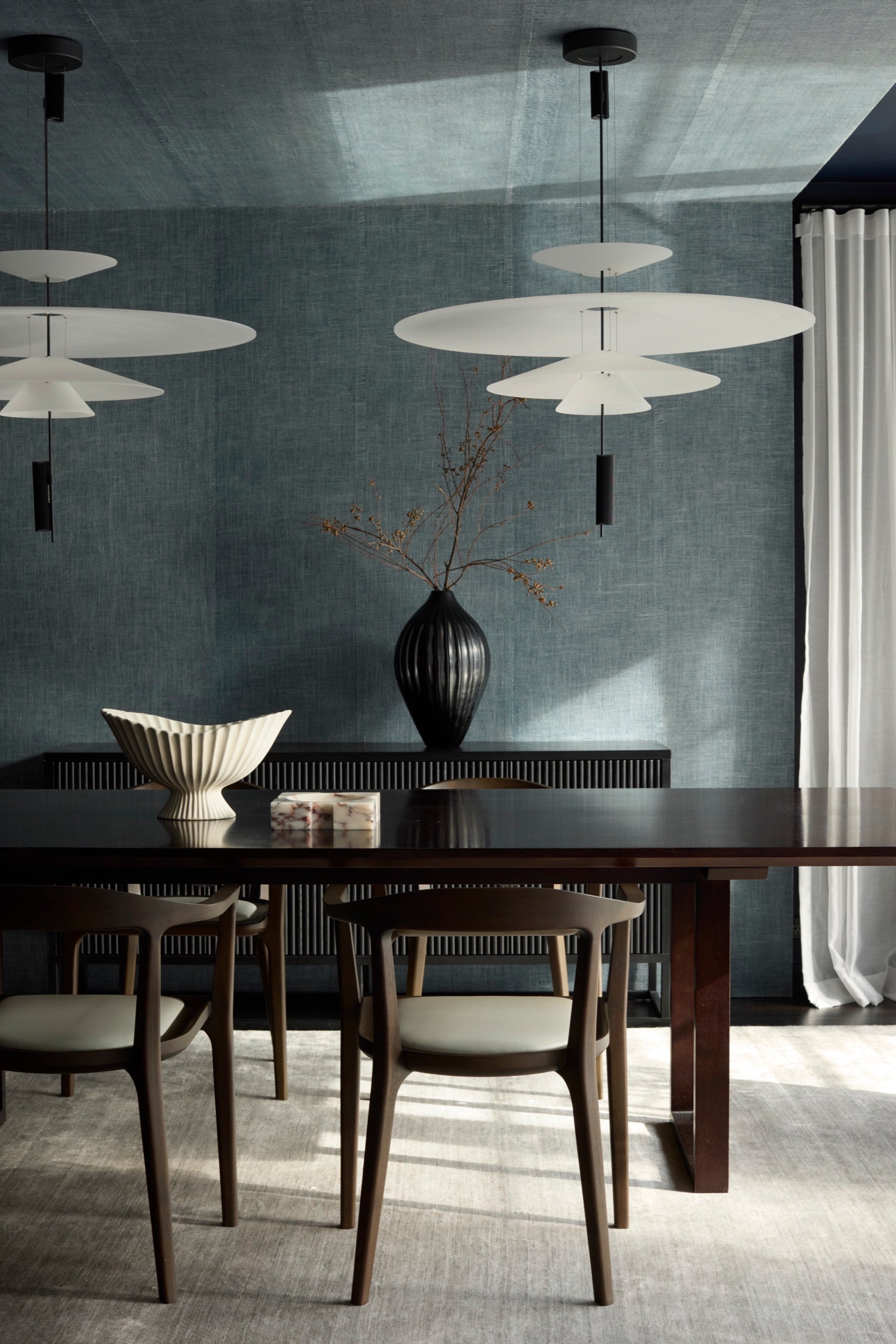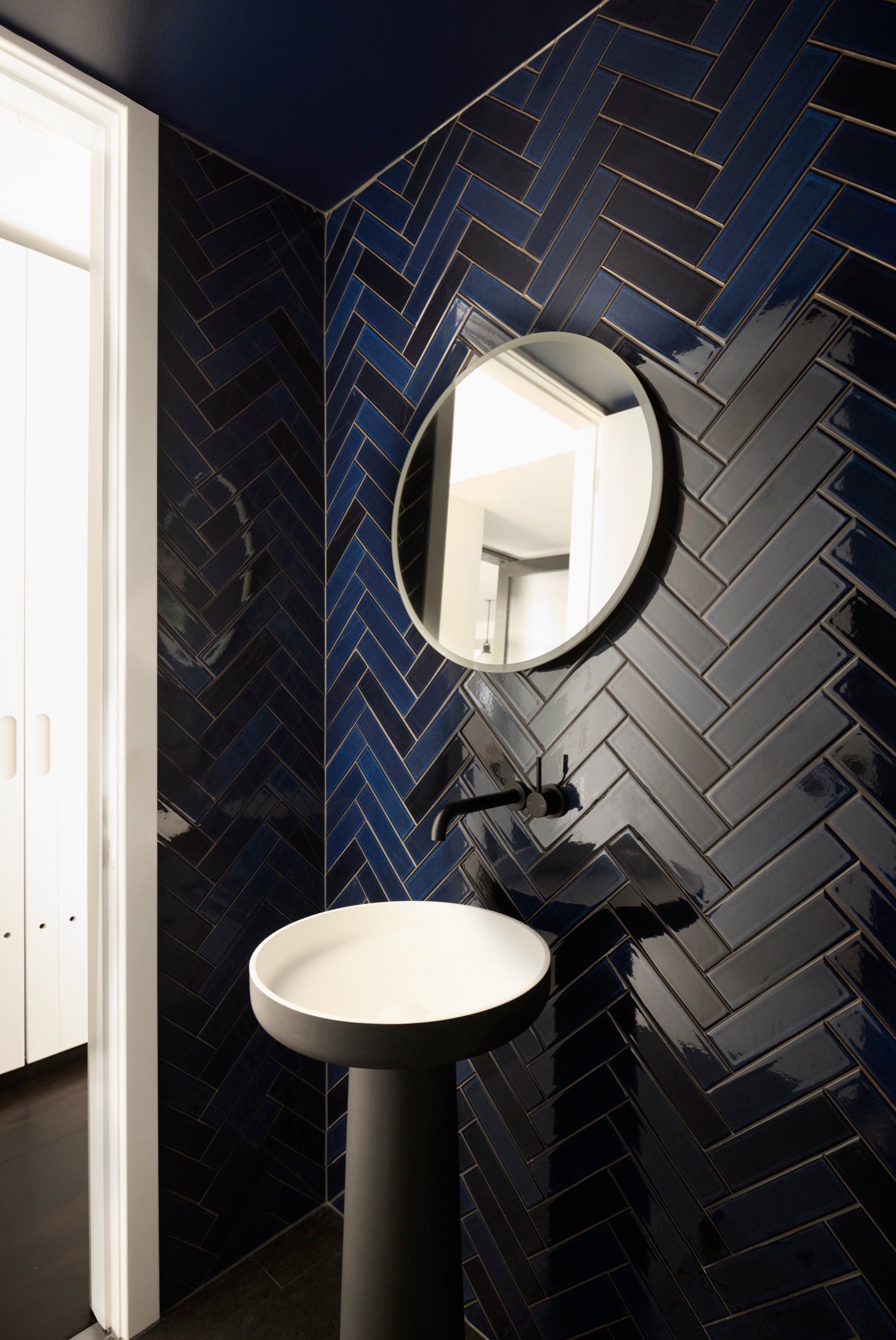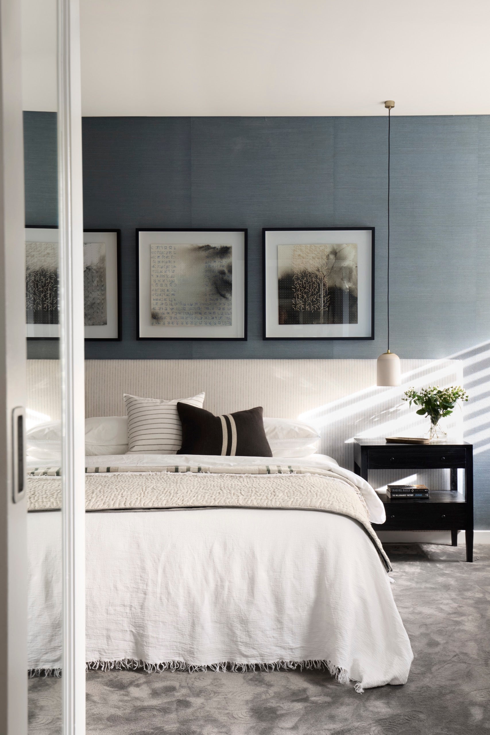 The renovation focused on creating a home that feels both expansive and intimate, with an emphasis on clean lines, curated textures, and a calming tonal palette of blues.