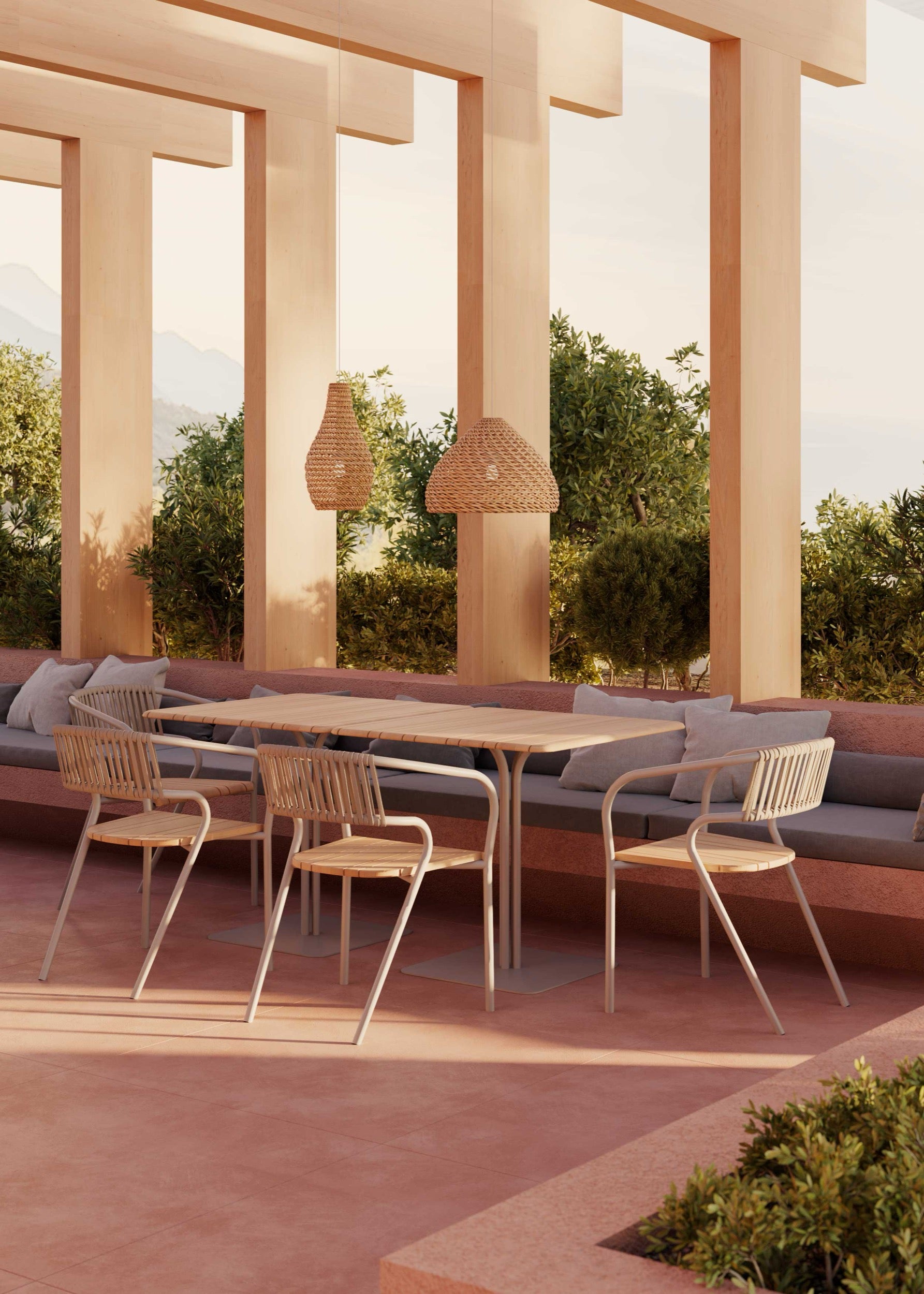 The Eki Collection is distinguished by its enveloping curved silhouette, introducing fluidity and ease to its profile. Timber slats in varied widths create rhythm and texture, adding dimension without excess. The interplay between structure and movement gives the collection a refined yet expressive identity. Eki merges functionality with sculptural clarity, defined by softness within form.