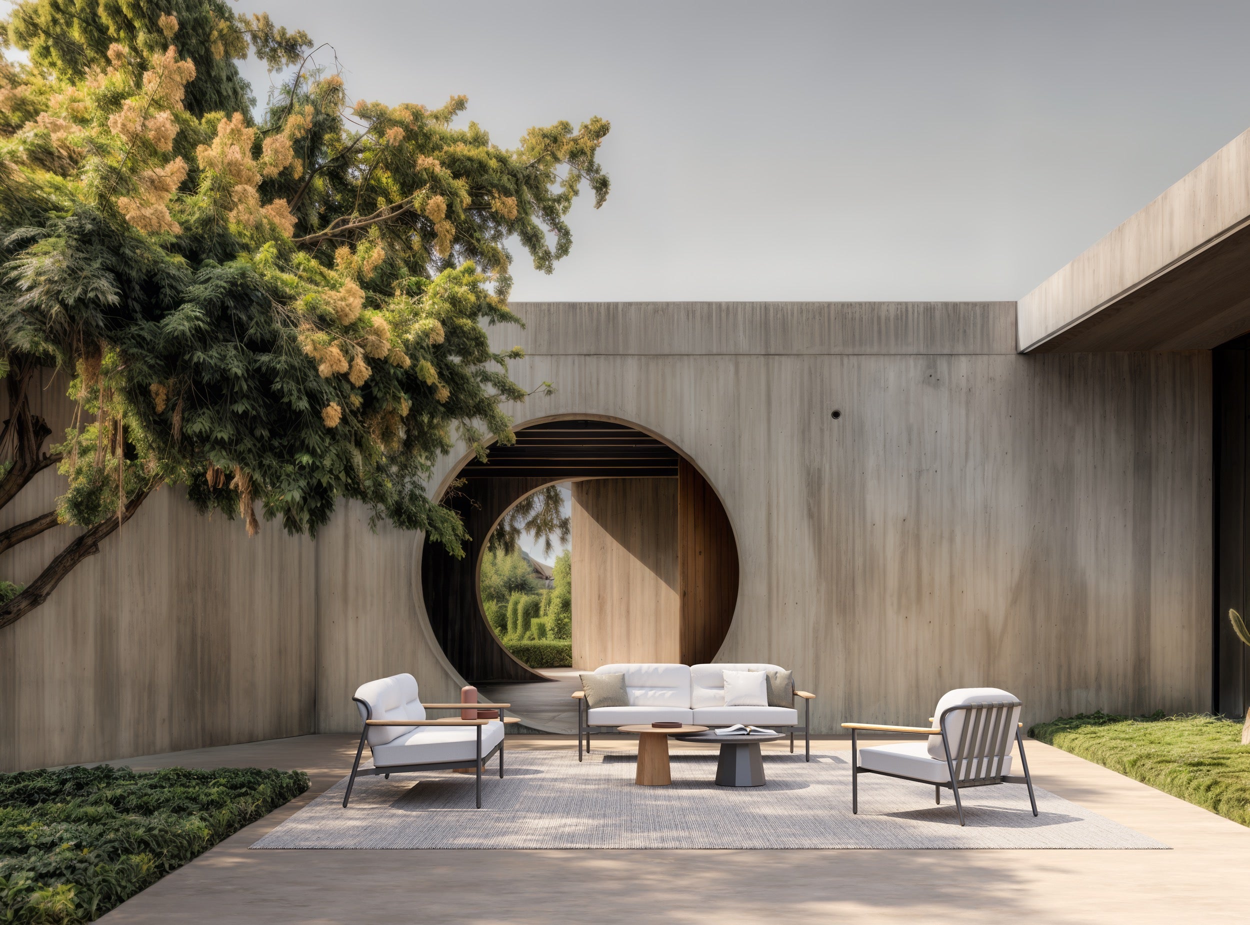 The Lacus Collection reflects a contemporary interpretation of natural inspiration, drawing subtle reference from the stillness of the Albufera lagoon. The distinctive sweep of the backrest introduces a sculptural gesture, offering personality while maintaining structural strength. Lacquered metal, teak and tailored upholstery are brought together in deliberate contrast, creating visual richness through material interplay. Lacus balances expressive form with enduring durability.