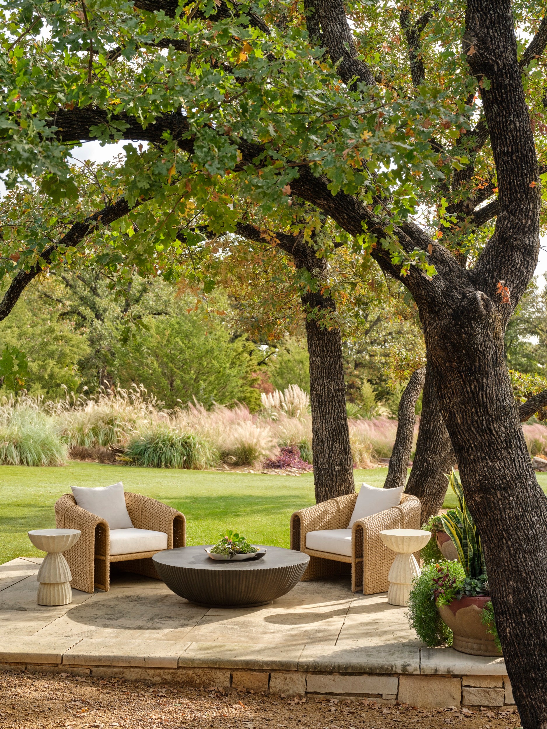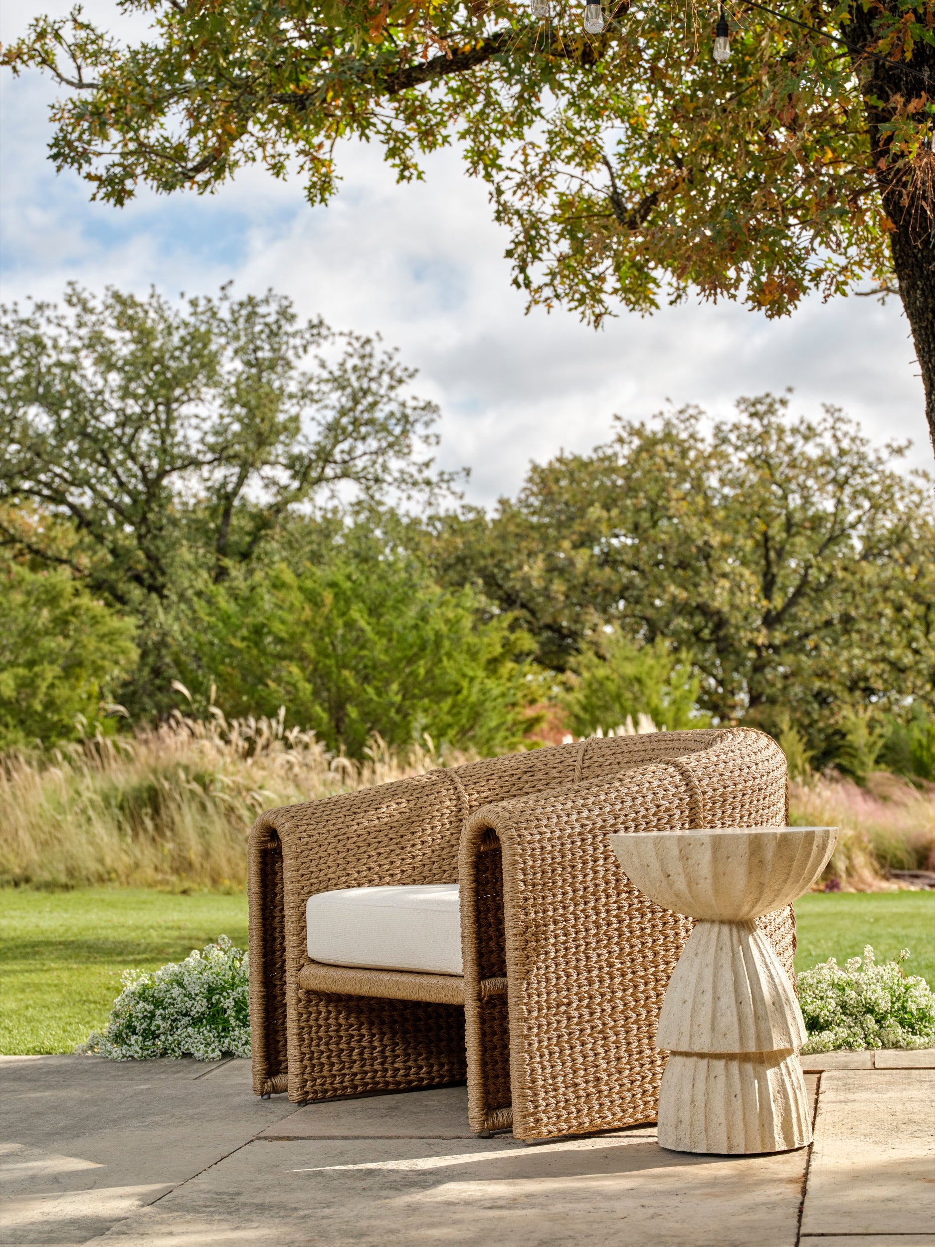 The Nereo Outdoor Accent Table introduces sculptural dimension to outdoor living with its varied and exaggerated fluting. Cast in durable Tuscan concrete composite, it brings organic artistry and tactile depth to any space. Whether used as a drink table, plant or positioned between or beside lounge chairs, it adds understated drama and natural refinement. A distinctive silhouette that enriches both indoor and outdoor arrangements.
