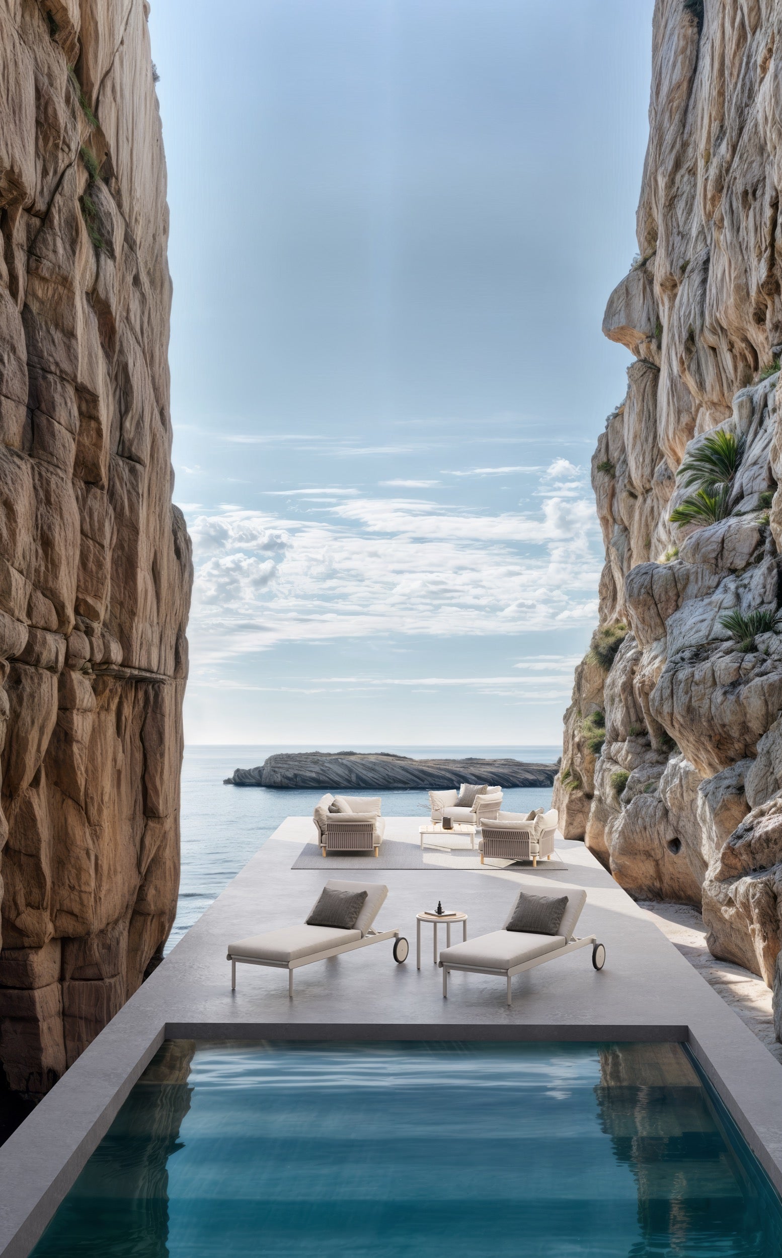 The Tempo Collection explores the interplay between lightness, modularity and comfort within an outdoor setting. A refined aluminium framework paired with woven rope forms the unifying language across each piece, lending cohesion and clarity. Generous quilted cushions soften the linear structure, introducing a sense of ease and immersion. This balance between precision and comfort defines Tempo’s relaxed, contemporary character.